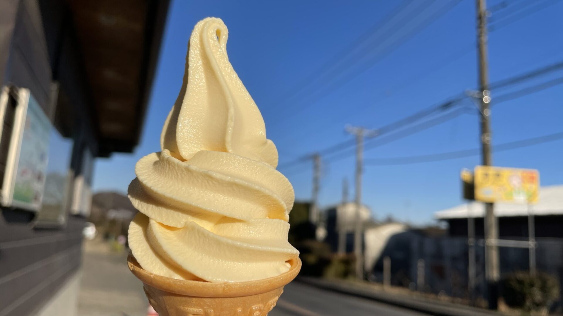 季節限定のブルーベリーのソフトクリームと、黄色いソフトクリームで迷いましたが、今回は黄色いソフトクリームに。