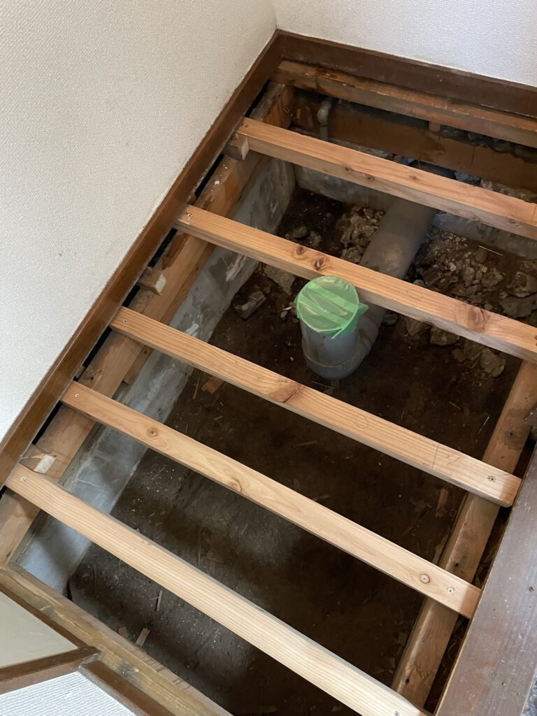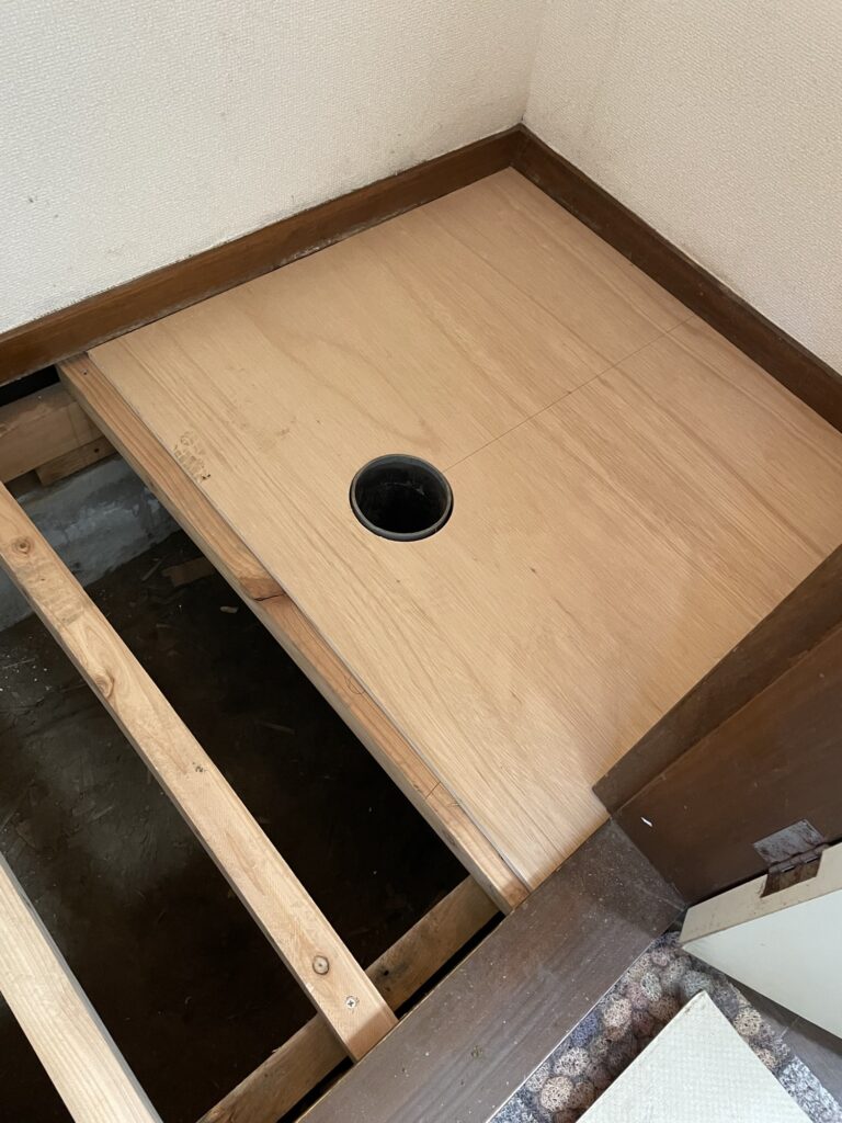 便座を外し、傷んだ床を張り替え、無事に交換完了!