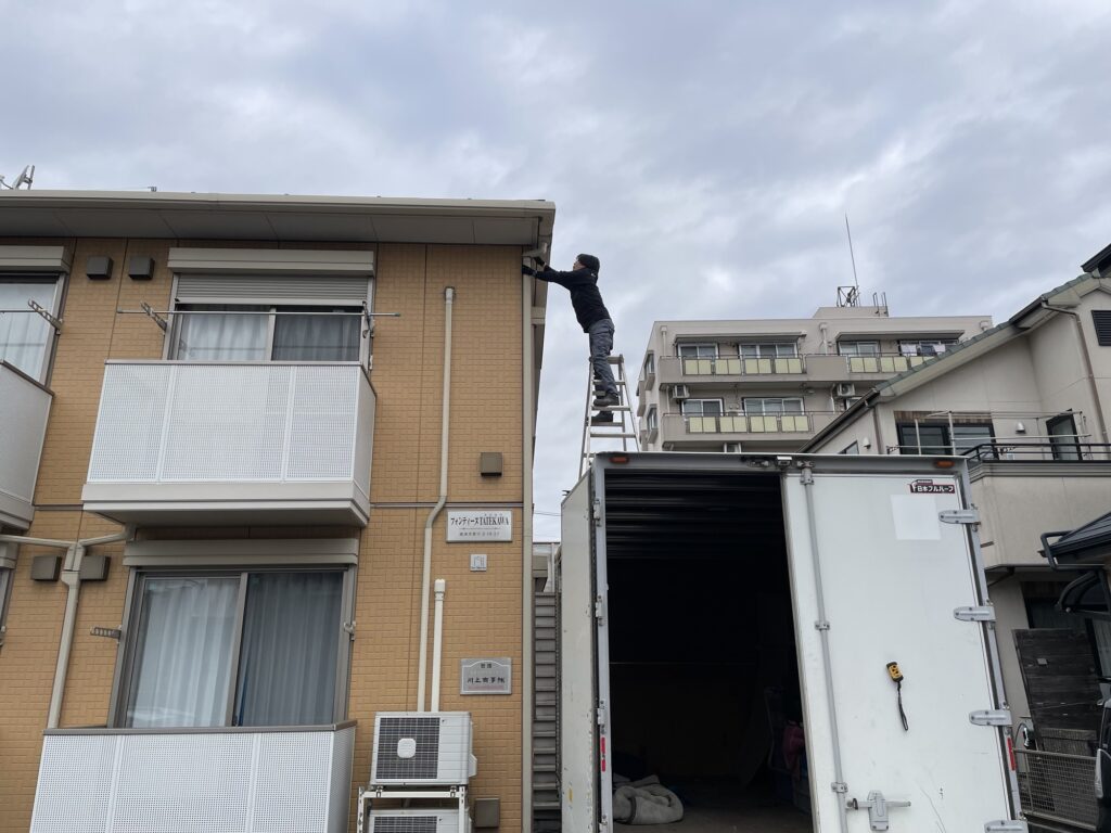 雨樋の外れを直しに!