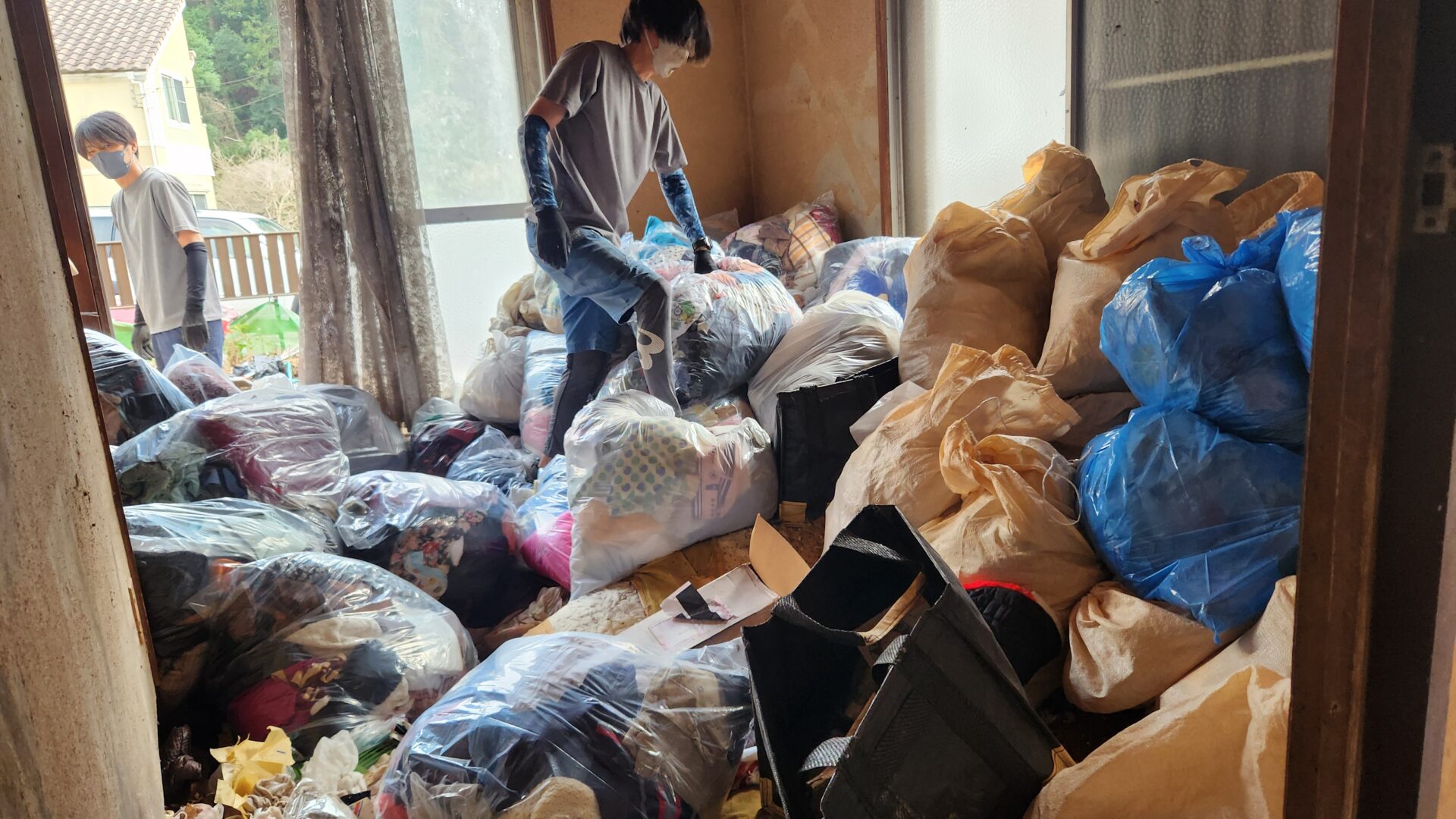 長年積み重なっていたごみが、ある意味“支え”になっていたようで、撤去が進んだことで手すりが折れてしまっている階段はさらに不安定な状態に。